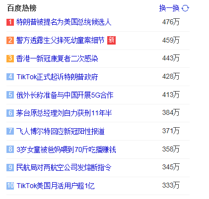 4.TikTok正式起訴特朗普政府 獵頭熱點(diǎn)熱度428萬(wàn)