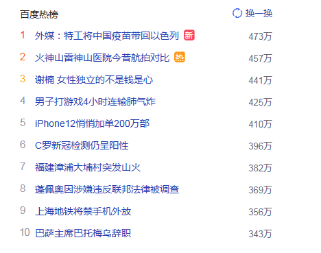 1.外媒:特工將中國疫苗帶回以色列 獵頭熱度熱點(diǎn)473萬